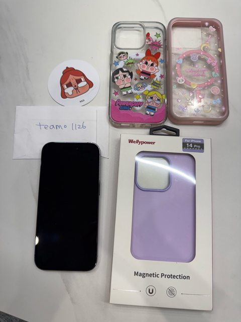 [型號] iPhone 14 Pro [規格] 256G 紫色 [保固] 已過保 [盒裝配件] 無 [售價] 18500 [交易方式/地點] 新竹園區附近面交 [連絡方式] 站內信 [商品照/補充說明] 1.功能外觀皆正常,電池健康度88% (螢幕下方有微小痕跡 不影響使用 可看最後一張圖) 2.面板保護貼/鏡頭貼剛換 3.送手機殼3個(1個全新)