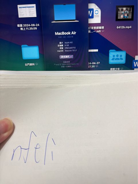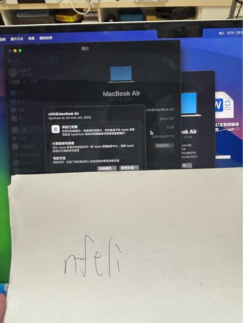 [型號] macbook air 15吋 (M2) [規格] 8g/256g [保固] 過保 [盒裝配件] 盒子、充電器 [售價] 27000 [交易方式/地點] 面交/桃園區 [連絡方式] 站內信 [商品照/補充說明]