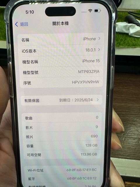 標題[販售] 雙北 iPhone 15 128g 黑色 保固長 無傷