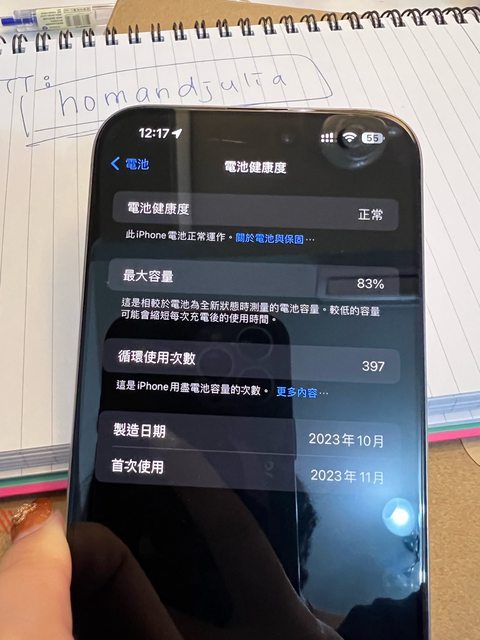 [型號] iphone 15 pro max 原鈦 256g [規格] 256g,原鈦色 [保固] 2024/11/4 [盒裝配件] 原廠配件,有盒&全新充電線未使用 [售價] $27500 [交易方式/地點] 南科這一區域可面交,台南市區要週末 [連絡方式] 站內信 Line: 同ptt id [商品照/補充說明] 贈手機殼 還有幾個未使用鏡頭貼可供更換 手機目前是有上保護貼跟鏡頭貼 健康度83% 循環使用次數397 女用機,無泡水摔機, 購買前請先確認清楚,二手商品售出不退 若有其他問題可站內信問~