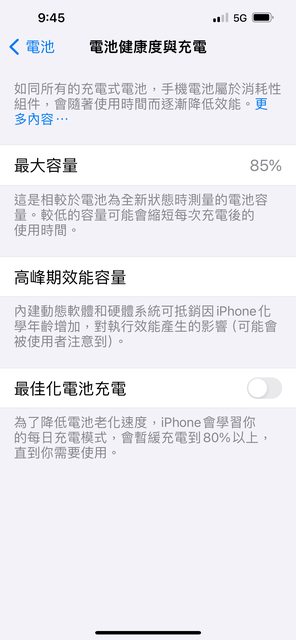電池健康度85%