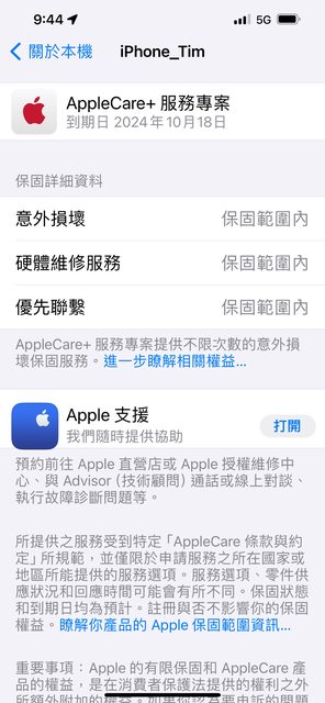 手機還在Apple Care+保固內至10/18