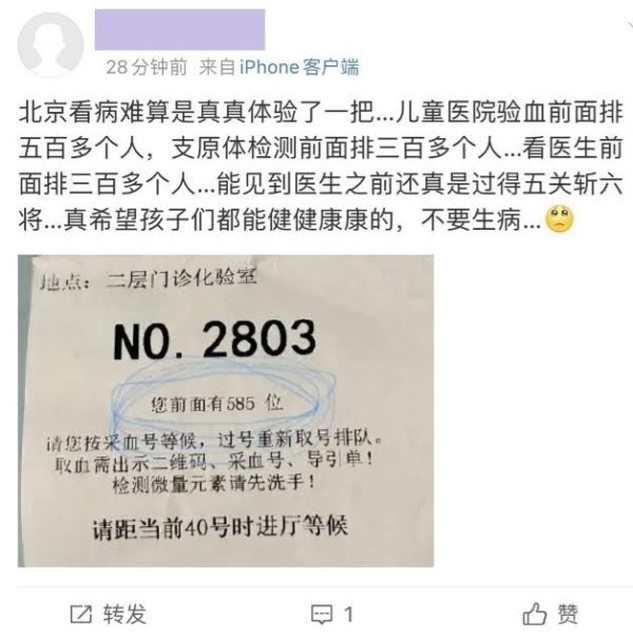 北京友誼醫院甚至貼出「急診等候時間24小時以上」