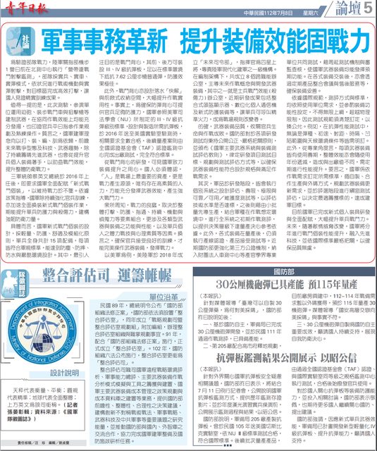 標題[新聞] 軍事事務革新 提升裝備效能固戰力