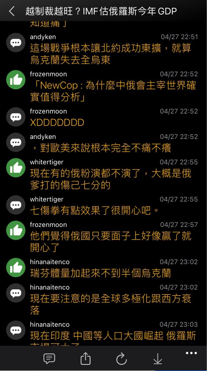 → RainCityBoy : 讀本板的中國民生經濟影響論、中國對俄輸血論等內容 04/29 17:55