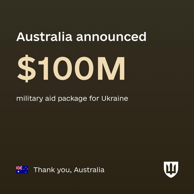 澳洲繼續與烏克蘭站在一起,並宣布了價值1億