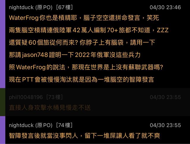 (如指稱板友腦袋有洞、低能兒)