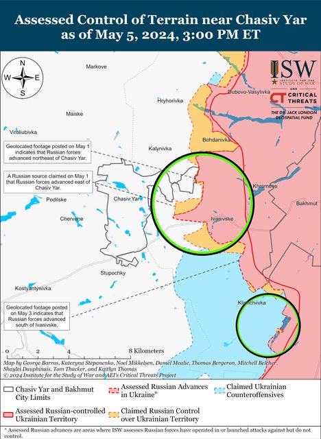 5月5日,俄羅斯軍隊繼續在Chasiv Yar方向