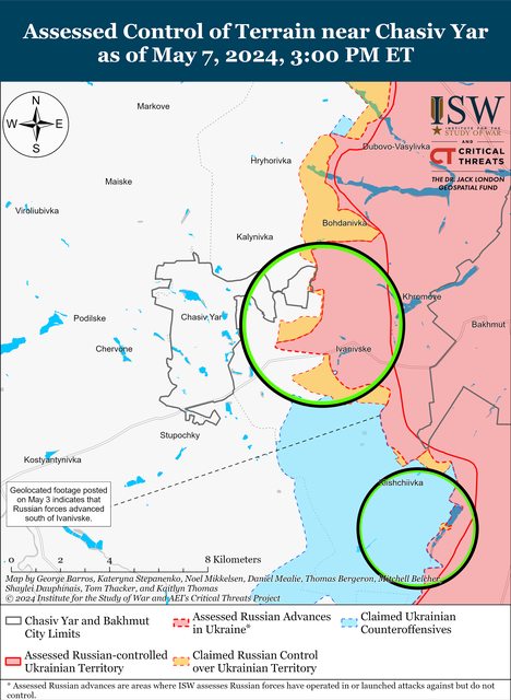 5月7日,俄羅斯軍隊繼續在Chasiv Yar附近