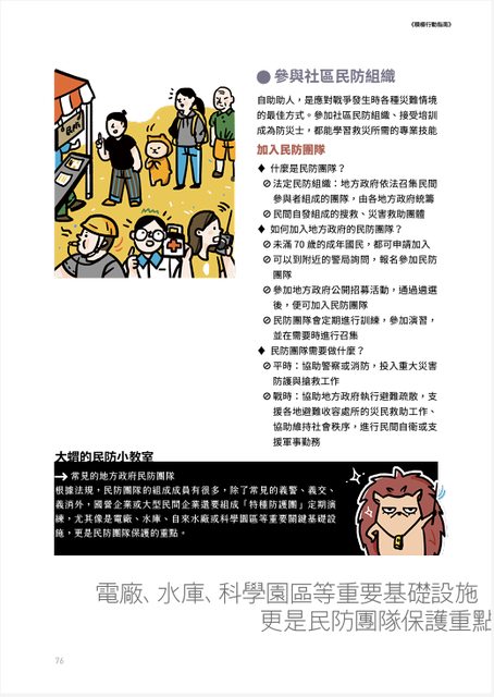 → crow0801 : 有些帳號看到民防組織 民防團體兩些字眼就要扯民兵 05/12 00:36