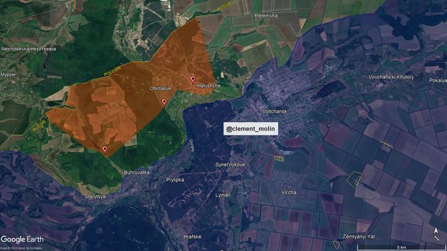 在沃爾昌斯克方向,俄軍從幾個方向深入