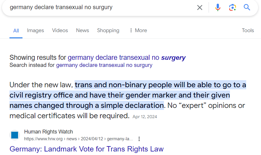 → jayppt : 剛剛看到德國支持變性 不必手術 也許能跨性躲徵兵 05/13 20:57