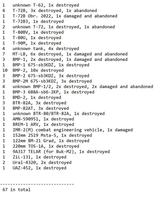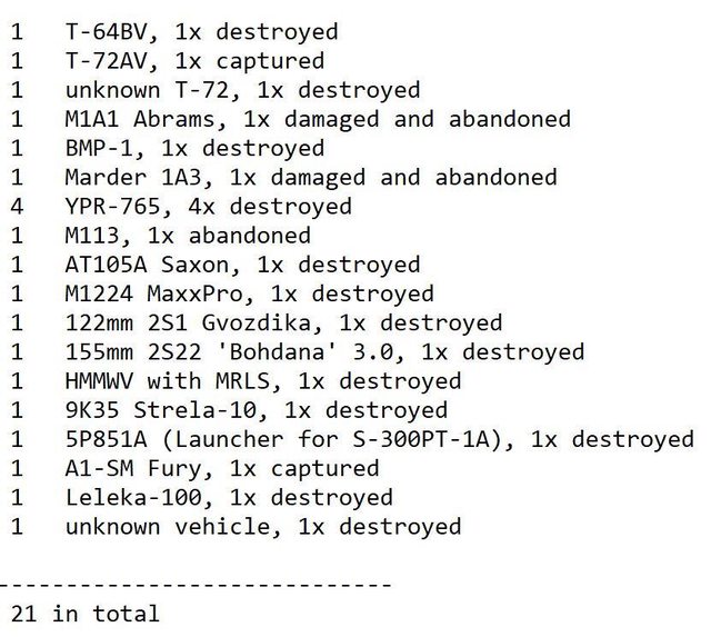 目視確認損失軍事裝備統計 2024.05.12 ~ 05.14