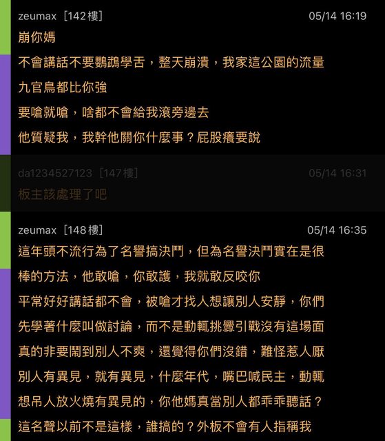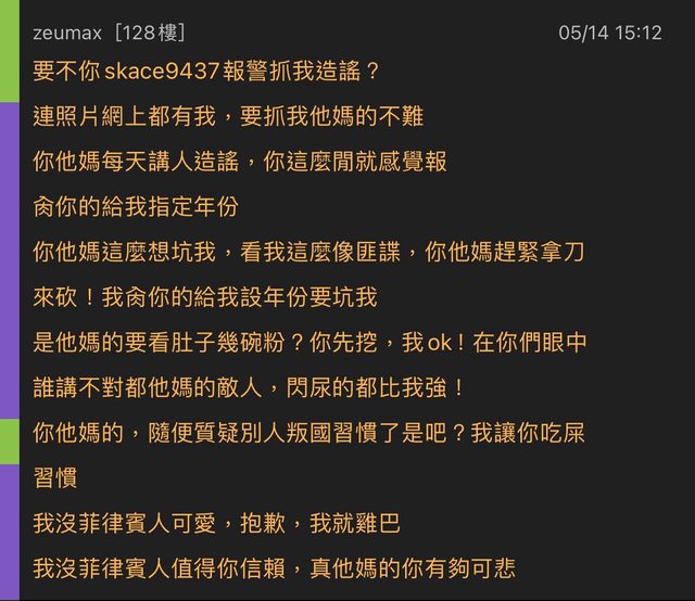 zeumax 於推文內大量人身攻擊板友以及發表引戰訊息