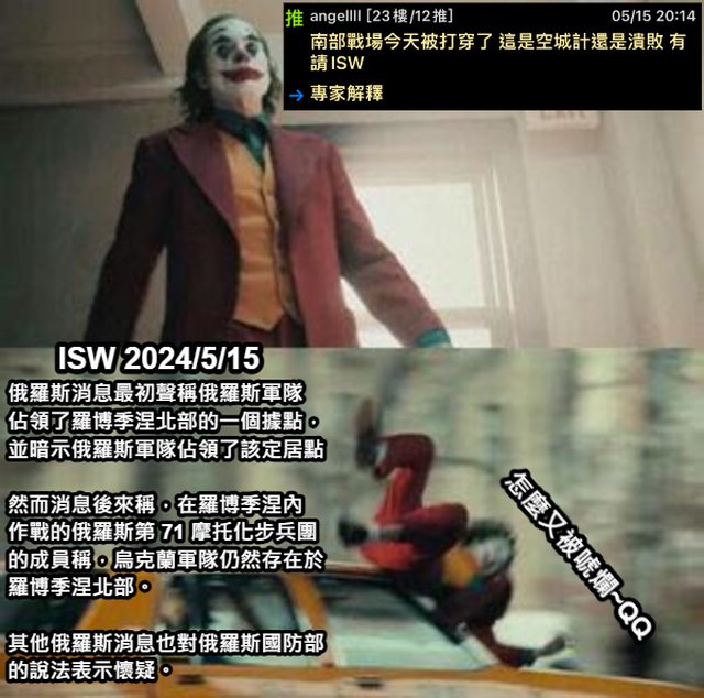→ jobli : 有變化,而俄羅斯近來收穫的戰果僅佔莫斯科控制下烏 05/16 22:04