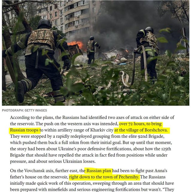 《經濟學人》也表示,俄羅斯在沃夫昌斯克前線