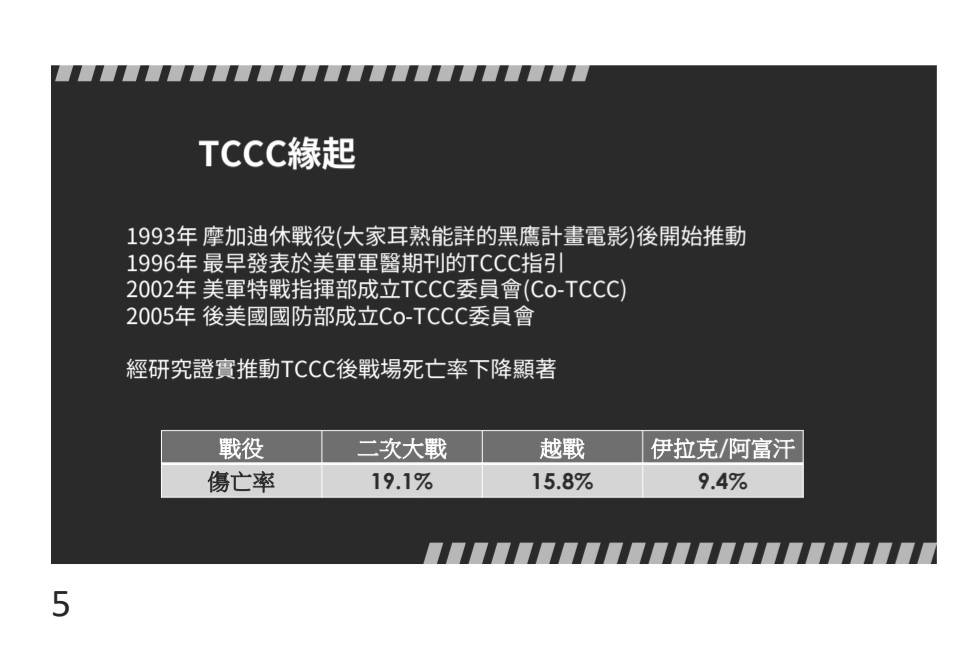zephyr9114 : 戰傷是國軍現在顯學、TCCC是戰傷顯學、TCCC是Role1 05/23 01:22