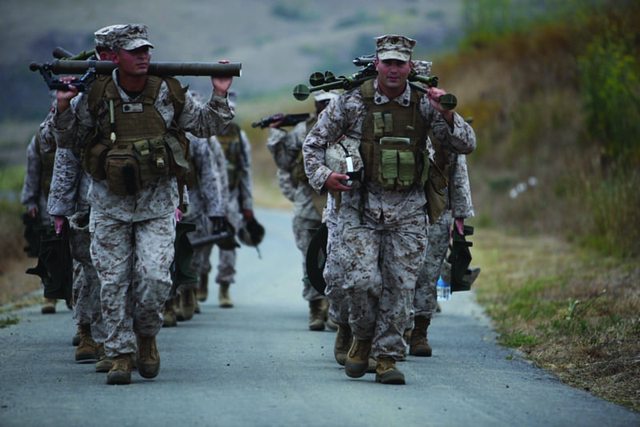 美軍型號為M327,這款迫砲是編制在海陸砲兵裡,所以砲操也像砲兵