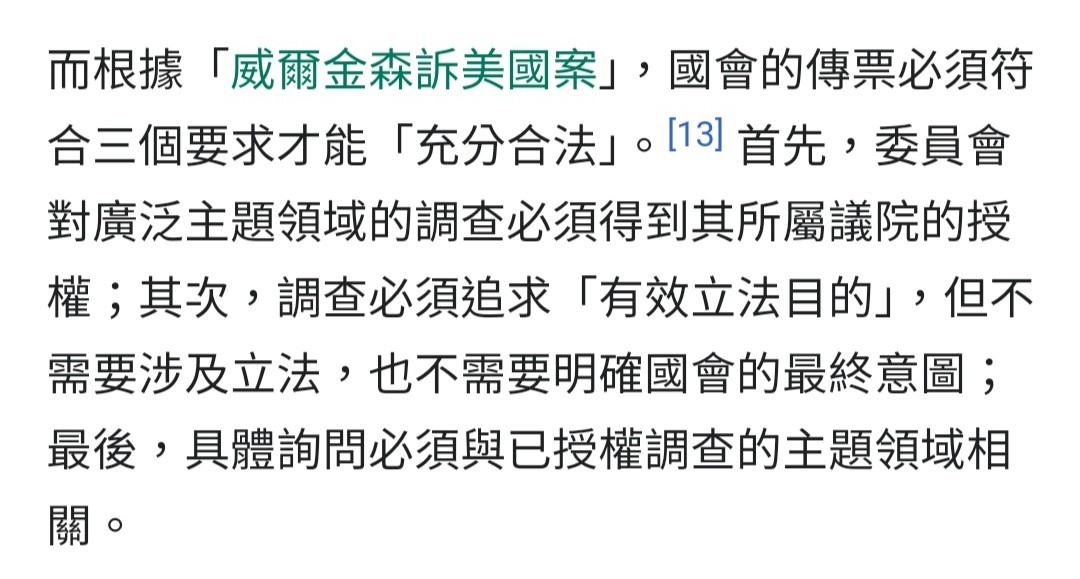 st89702 : 美國國會是沒有質詢權的 國會傳票效力是建立在威金 05/25 12:38