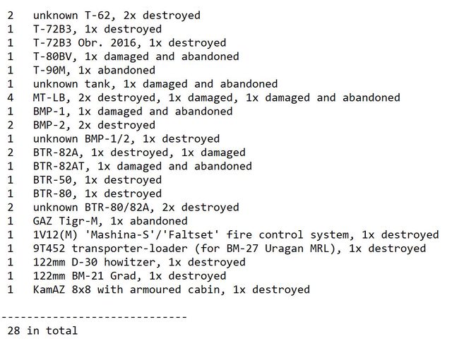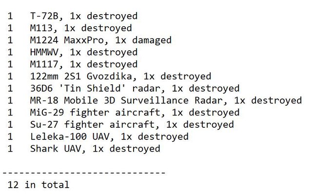 - 至少兩輛被毀壞的 S-300/400 運輸安裝車 (TEL)。