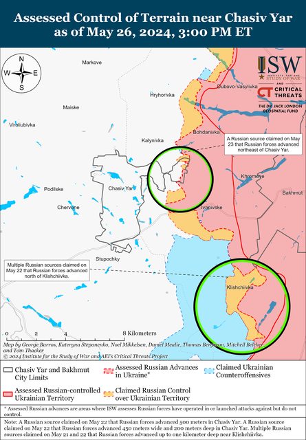 5月26日,俄羅斯軍隊繼續在Chasiv Yar附近