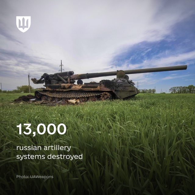 已有13,000門俄羅斯火砲系統被摧毀。
