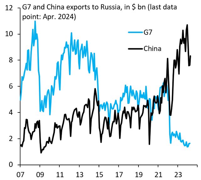 中國對俄羅斯出口的成長足以抵銷七國集團