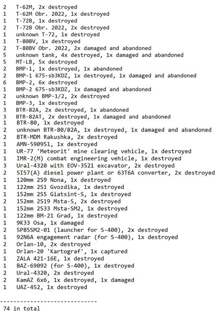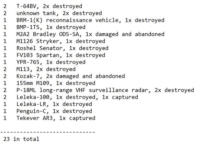 目視確認損失軍事裝備統計 2024.06.02 ~ 06.06