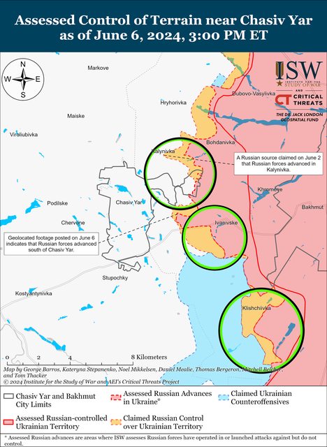 6 月 6 日,俄羅斯軍隊在 Chasiv Yar 附近繼續