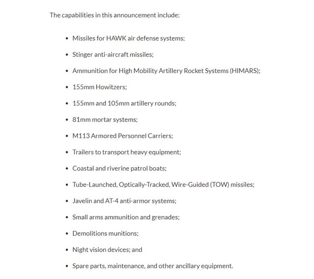 美國宣布向烏克蘭提供價值 2.25 億美元