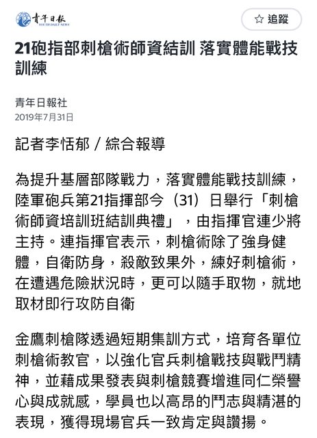 推 mosster0113 : 如果國軍要精通刺槍,共軍應該蠻高興的 06/10 11:01