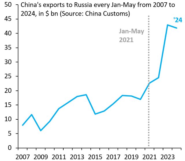 中國對俄羅斯的出口大幅成長,甚至在入侵