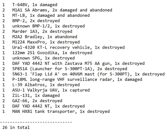 目視確認損失軍事裝備統計 2024.06.11 ~ 06.14