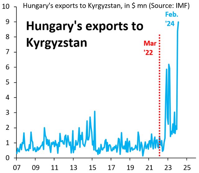 例如,匈牙利的出口成長了1000%。