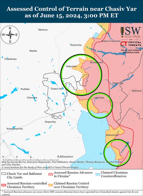 6月15日,俄羅斯軍隊繼續對Chasiv Yar以東