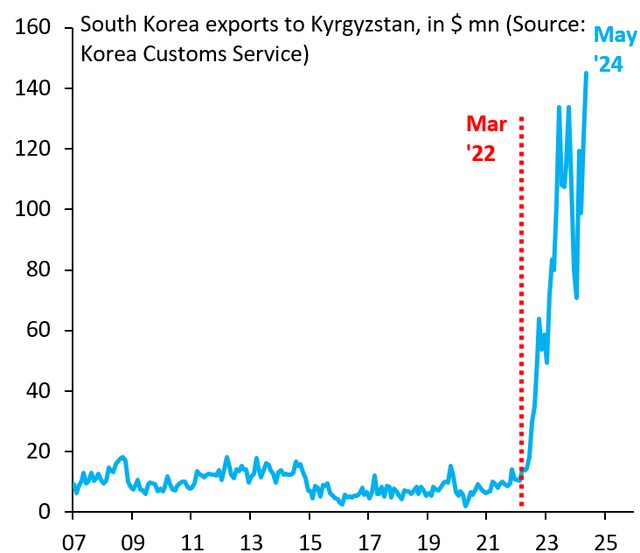2024年5月,韓國對吉爾吉斯的出口創歷史