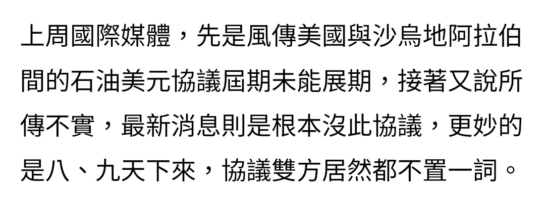 → cloudfour : 石油美元協議了。這個消息第一次出現還是在加密貨 07/05 21:30