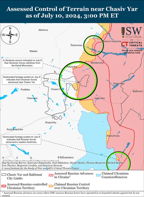 7月10日,俄羅斯軍隊繼續在Chasiv Yar方向