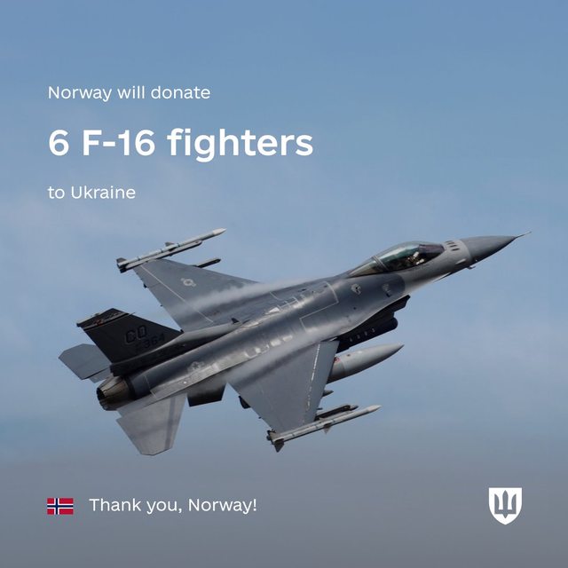 挪威將向烏克蘭捐贈六架F-16戰鬥機