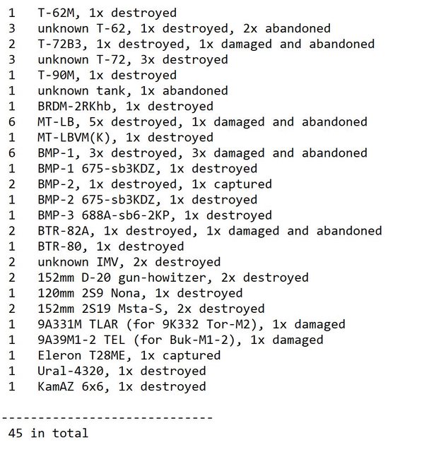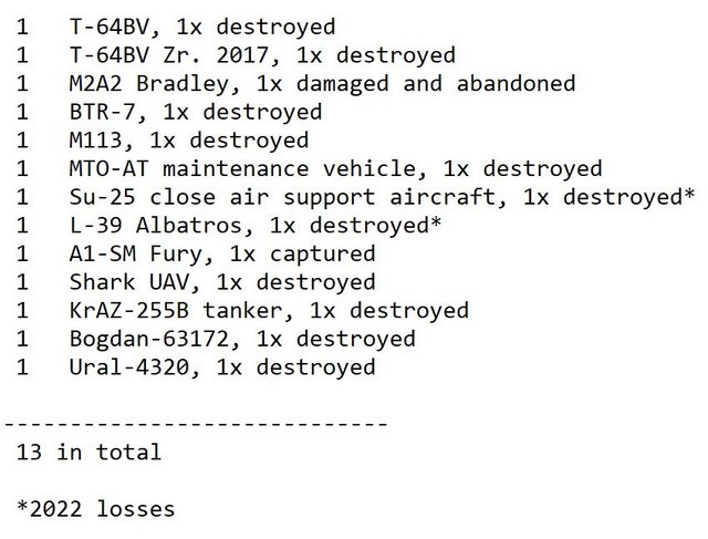 目視確認損失軍事裝備統計 2024.07.09 ~ 07.11