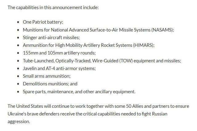 烏克蘭提供的最新援助計畫中包含的武器