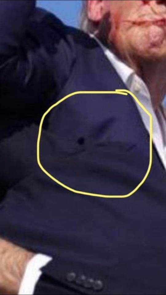 推 lrac : 川普舉手喊fight 照片衣服有一個孔洞,身體應該有 07/14 19:09