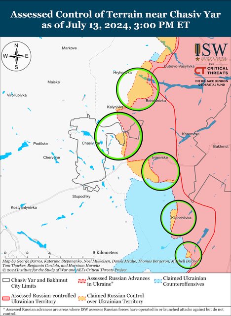 7月13日,俄羅斯軍隊繼續在Chasiv Yar附近