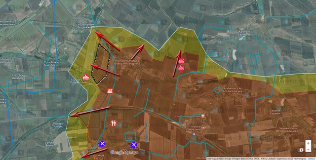 修正俄軍在Novoselivka Persha 南方控制範圍