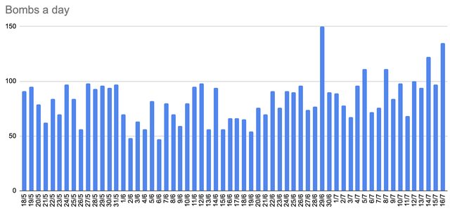GSUA 報告的俄軍炸彈襲擊數量正在緩慢