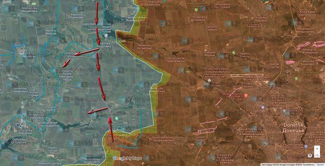 這方面發生了重要變化,俄軍佔領了拉茲多利 夫卡,並且至少接近伊凡諾-達里夫卡 (情況仍有待澄清)。 俄軍很可能一方面想要向費多里夫卡推進, 另一方面又試圖繞過斯皮恩的烏克蘭防禦系統 恰西夫亞爾戰線: https://i.imgur.com/poexfet.png