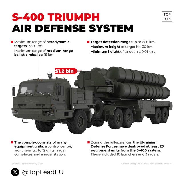 烏克蘭軍隊摧毀了至少16個S-400防空系統