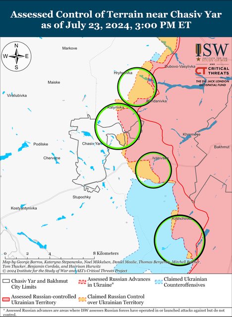 Kalynivka 北部和 Hryhorivka 附近,儘管 ISW