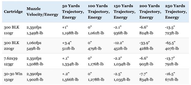 .300BLK彈的彈道性能跟7.62x39mm幾乎完全一樣