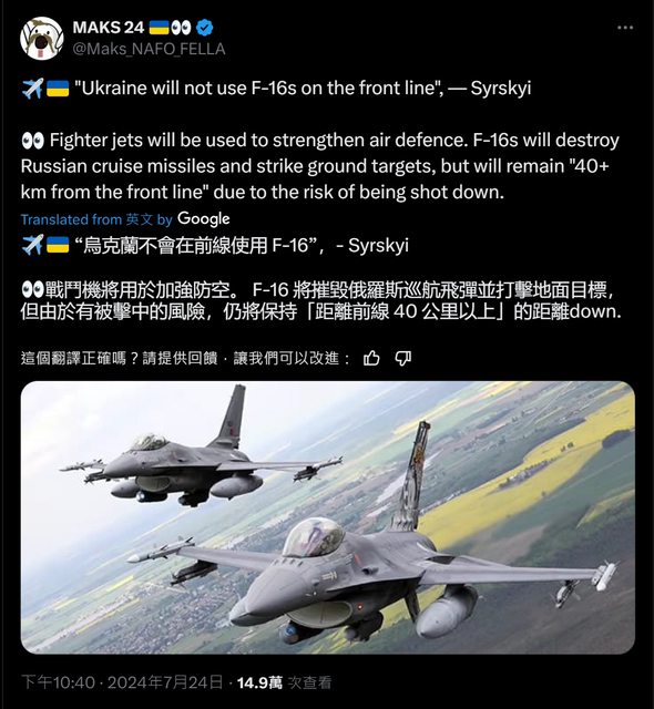 Alexander107: 俄防空單位不時是都被炸到全滅了,F-16怎還不能部署 07/26 00:52